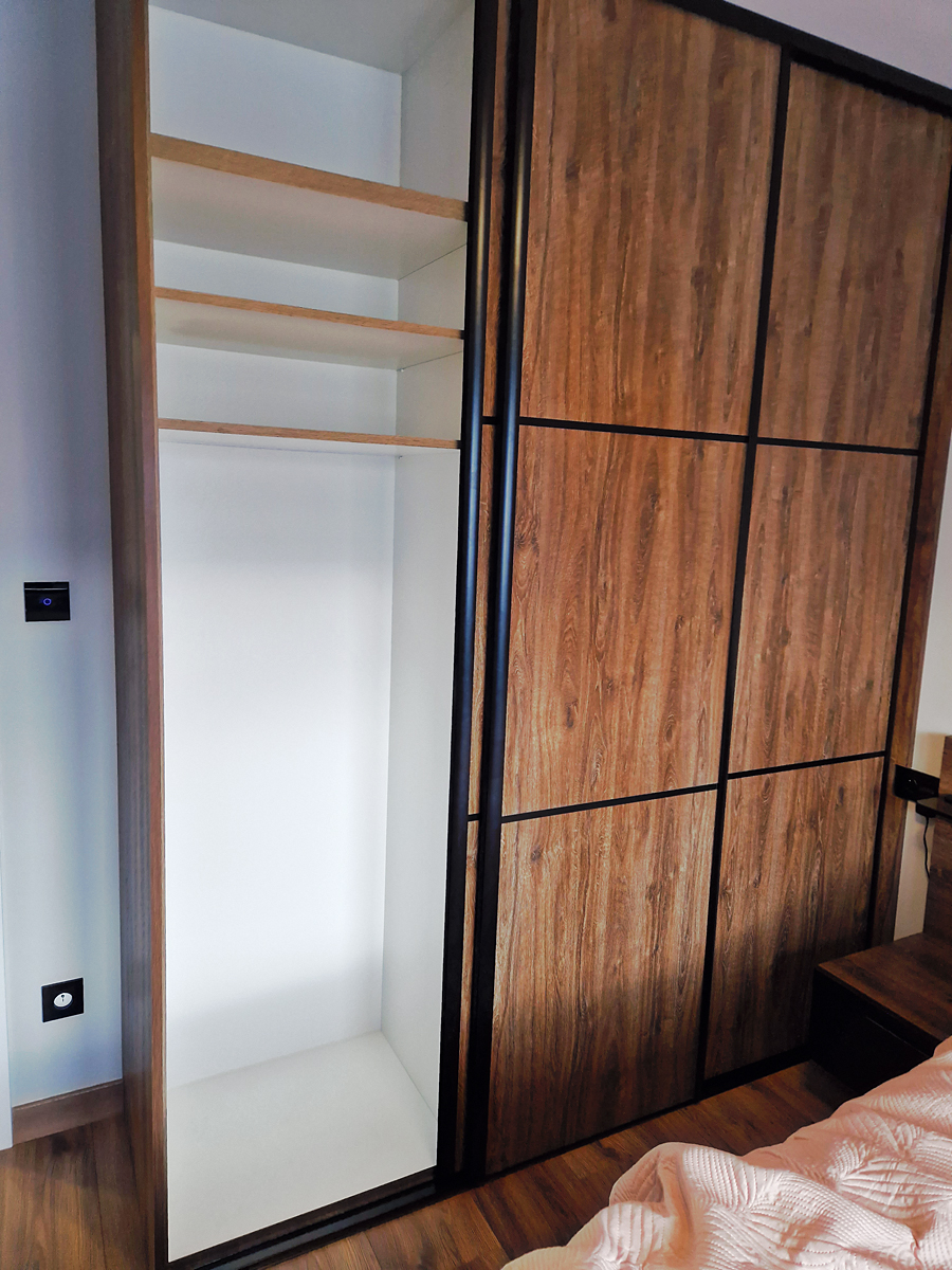 Jeżeli marzysz o dedykowanym rozwiązaniu i szafie przesuwnej na wymiar, zapewniamy bezproblemową pomoc z pomiarami, wyborem materiałów i całością przedsięwzięcia. Wykonanie i montaż szafy lub garderoby na wymiar odbędzie się w terminie, który będzie Ci pasował.