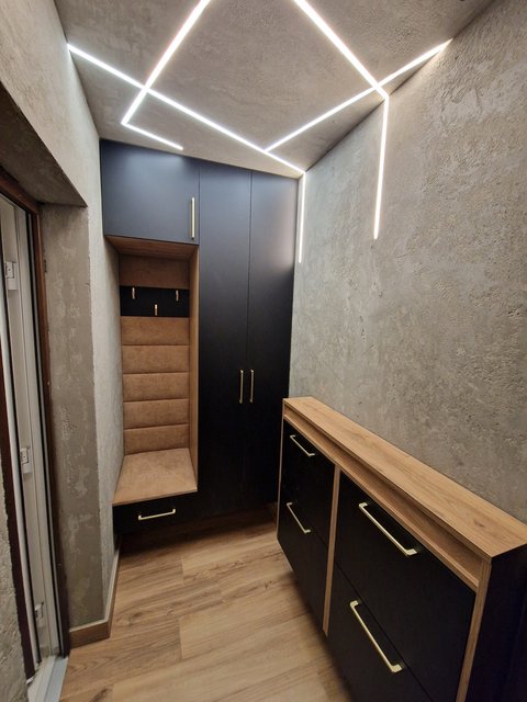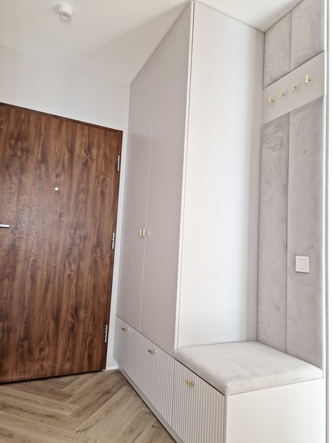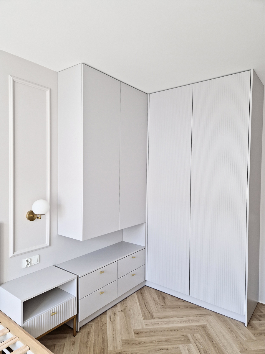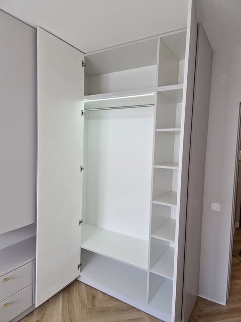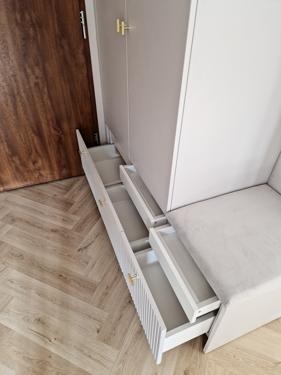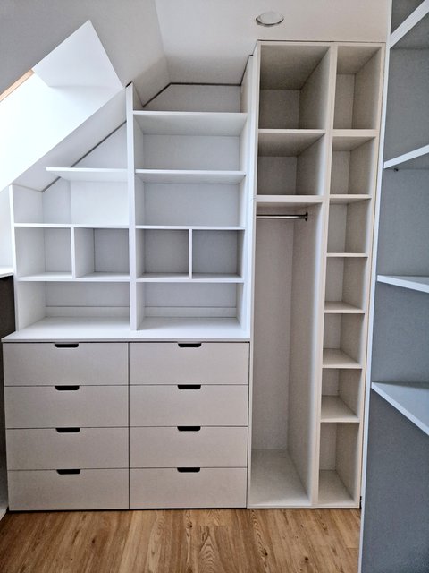 Zastanawiasz się, jakie zalety ma posiadanie zabudowy garderoby lub szaf pod wymiar? Oto kilka z nich: • oszczędność miejsca (do ¾ możliwej zawartości w odniesieniu do systemów sklepowych) • możliwość samodzielnego wyboru koloru frontów, rozmieszczenia półek, systemów i dodatków (drążków, szuflad, schowków), czyli całkowita swoboda konfiguracji poszczególnych elementów zabudowy • dopasowanie kształtu zabudowy do posiadanego miejsca – nie marnujemy powierzchni • taka aranżacja jest łatwa w utrzymaniu czystości – nie ma zbędnych wnęk, trudno dostępnych powierzchni • wartość ozdobna i estetyczna także dla naszych gości